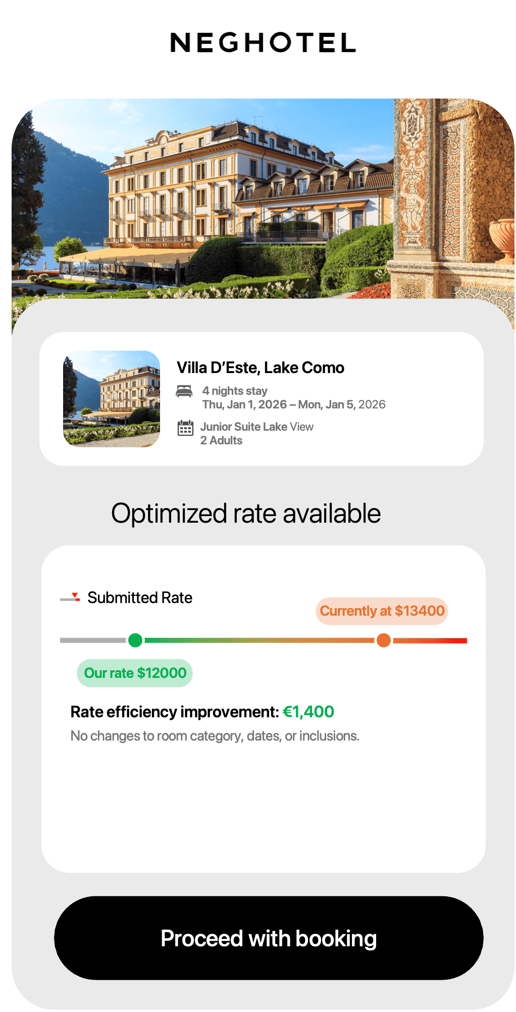 Private rate optimization tailored to distinct client profiles and travel structures.